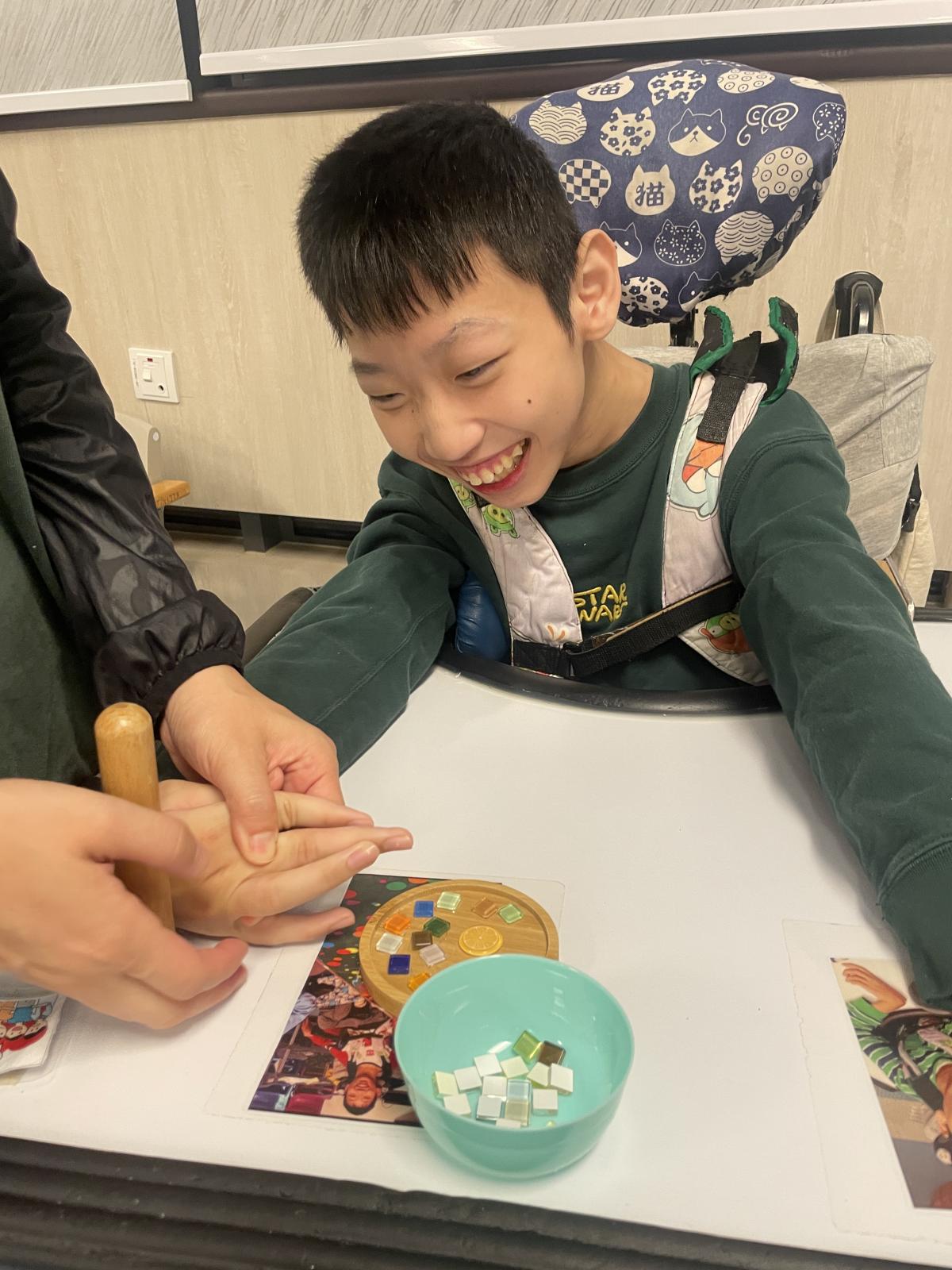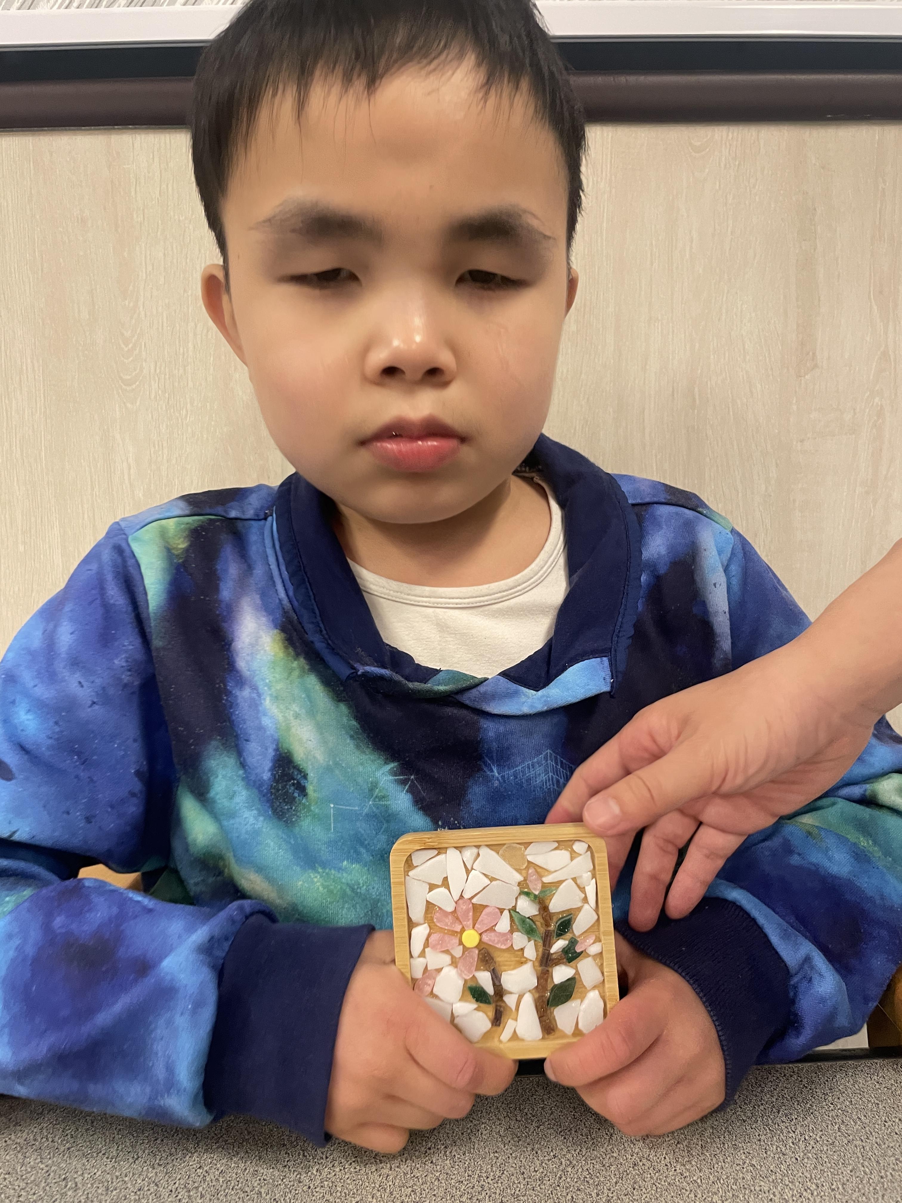 馬賽克小組以色彩各異、形狀不一的馬賽克小片拼出獨一無二的創作。宿生們發揮創造力和想像力,拼出各式有趣的圖案,製作具有個人風格的馬賽克杯墊,享受創意生活的DIY樂趣。同時,活動亦訓練宿生手眼協調與視覺專注力。當宿生完成成品時,他們都顯得非常興奮並充滿成就感。