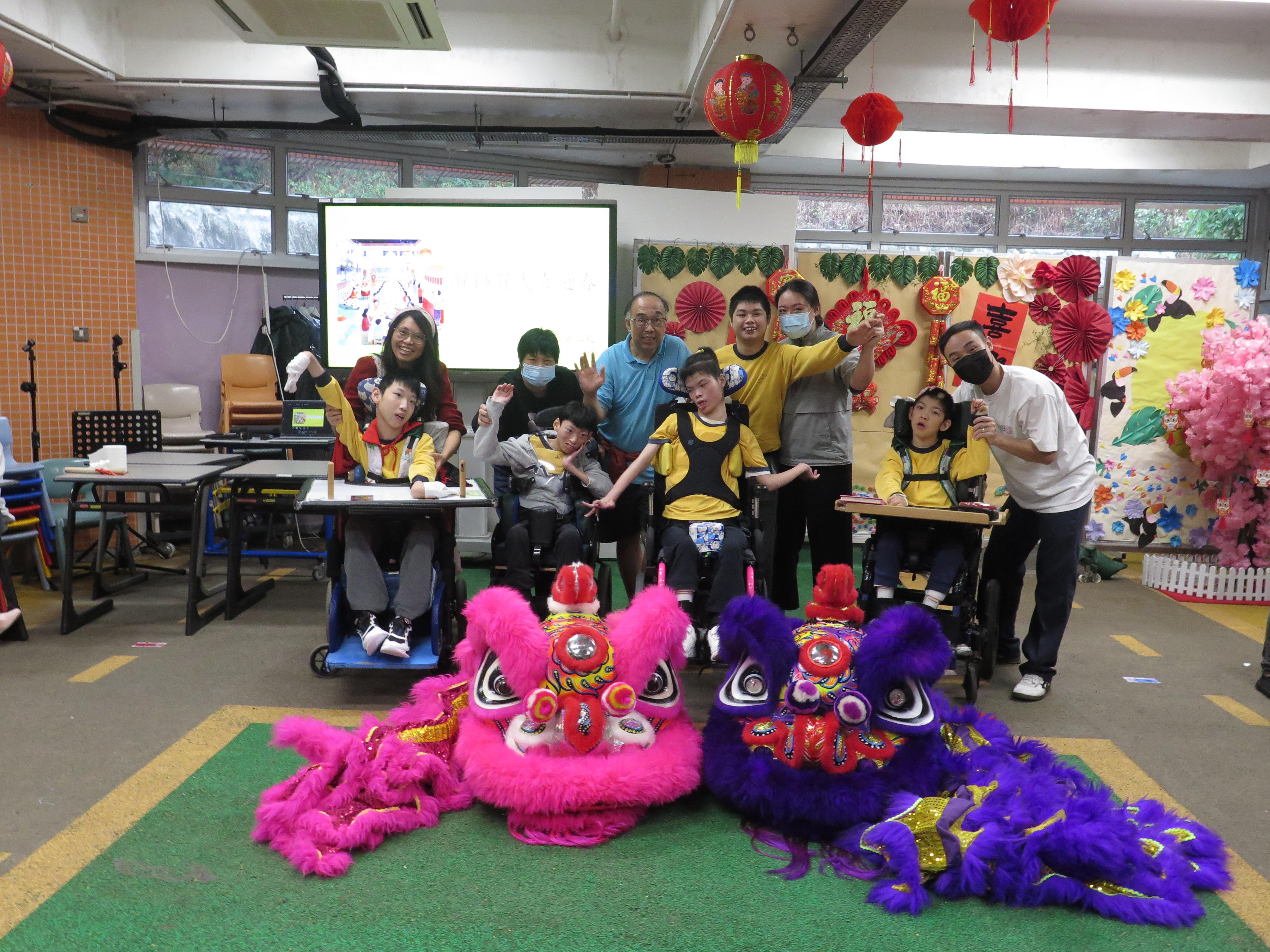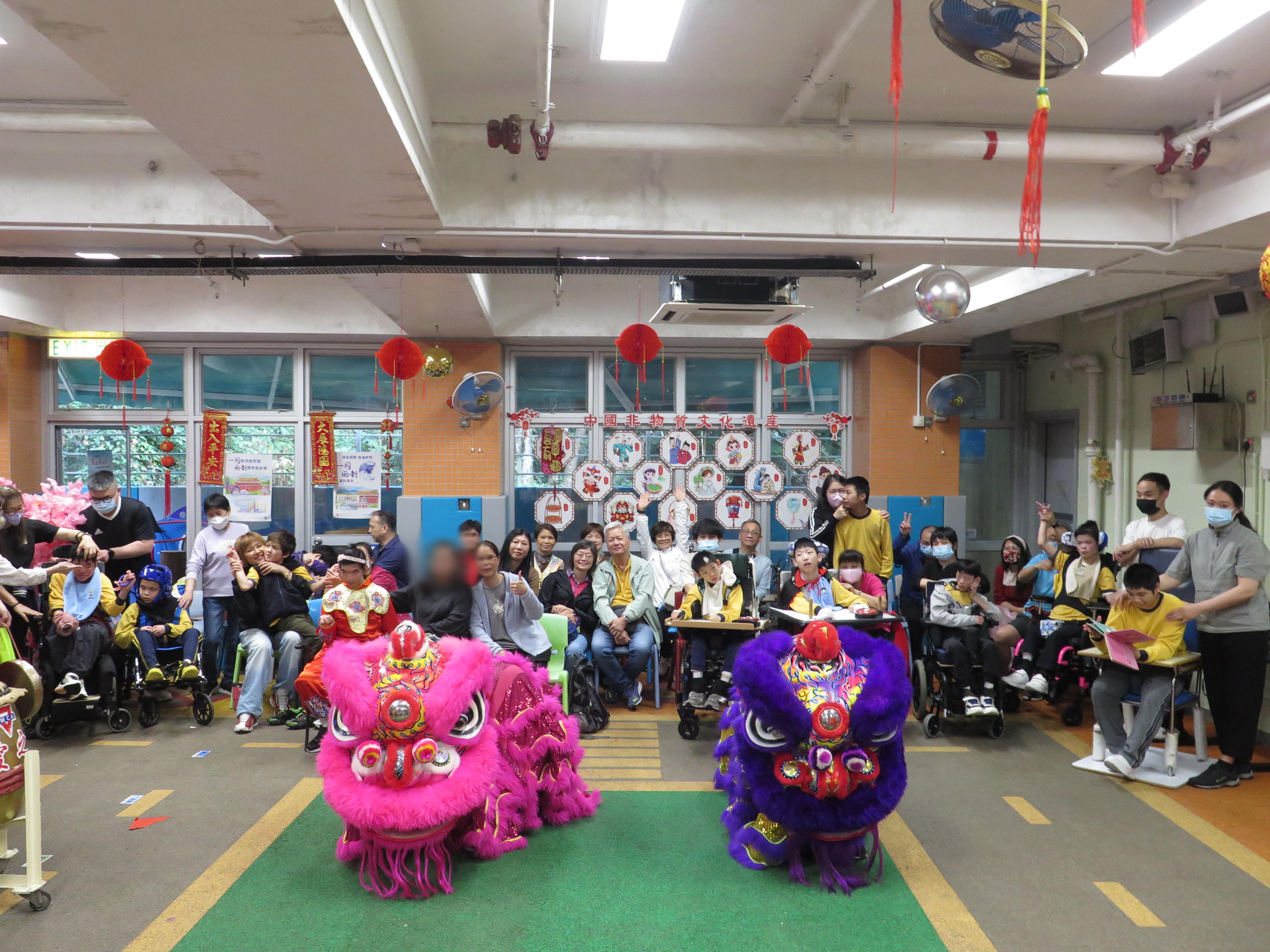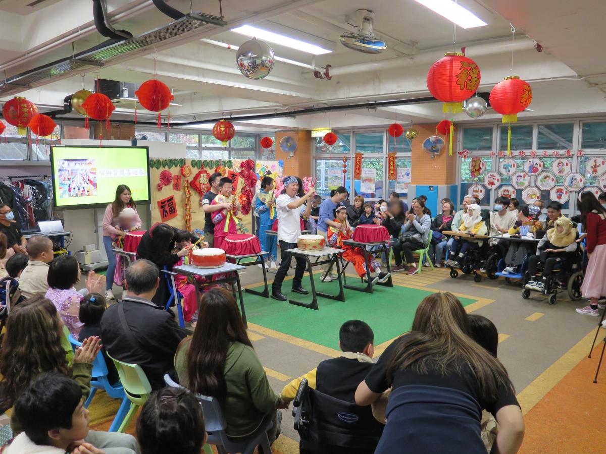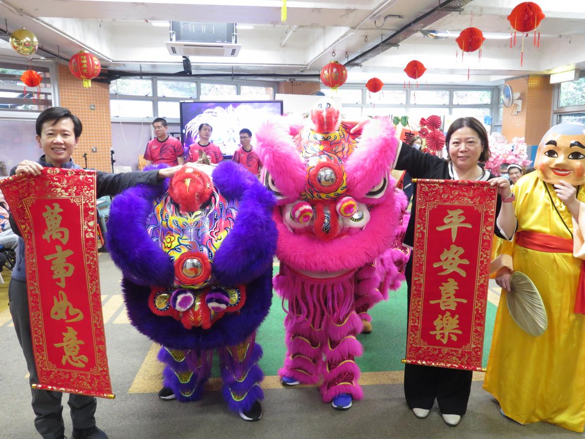 醒獅賀歲喜迎春 2026年3月3日(農曆十五)「醒獅賀歲喜迎春」家校盆菜聚餐,學生與家人在元宵佳節享受共聚時光,認識中華文化,提昇親子關係。當天除了傳統醒獅表演外,還有學生表演中國鼓樂,及音樂劇,發展學生潛能及促進社交能力。