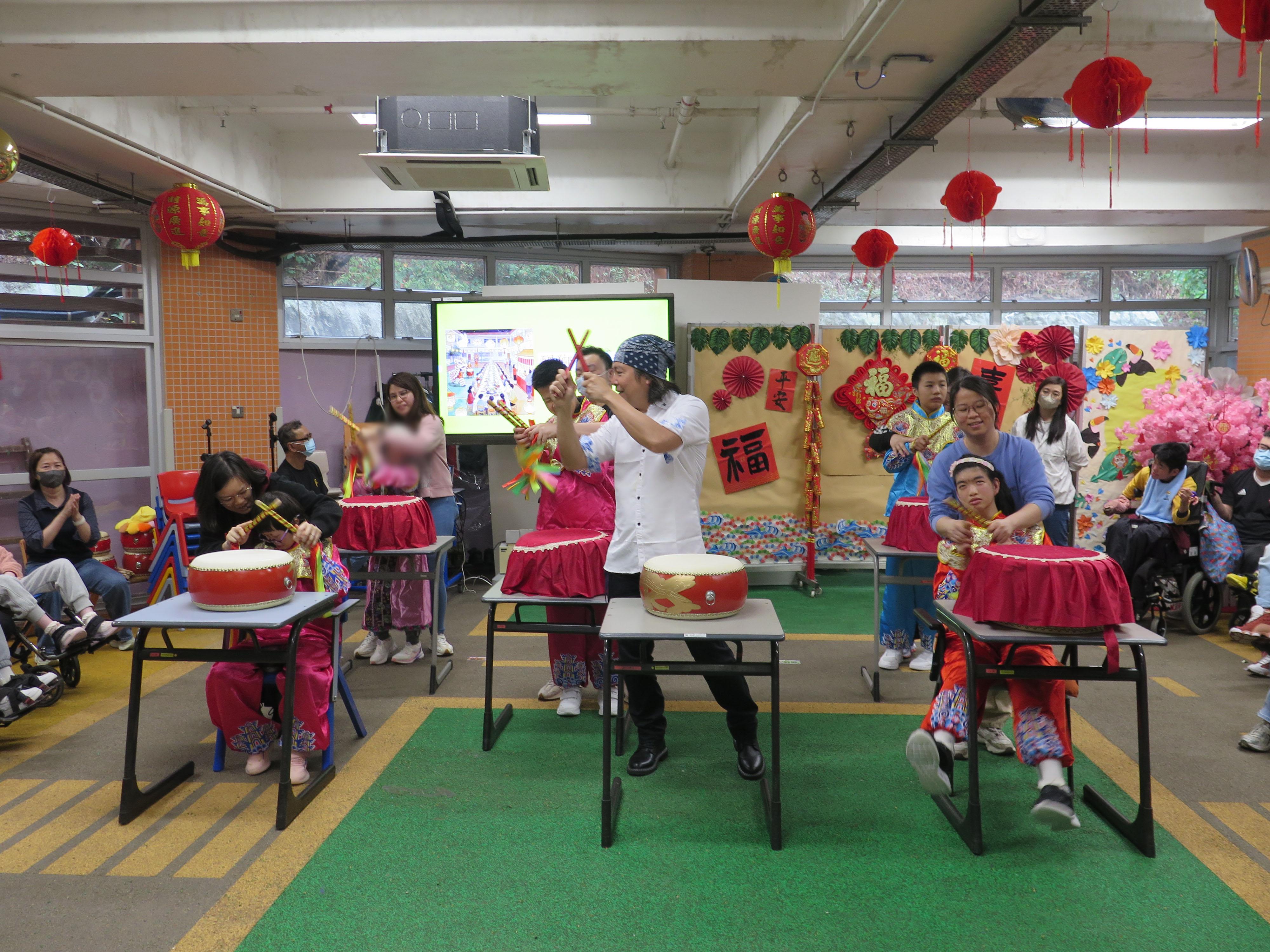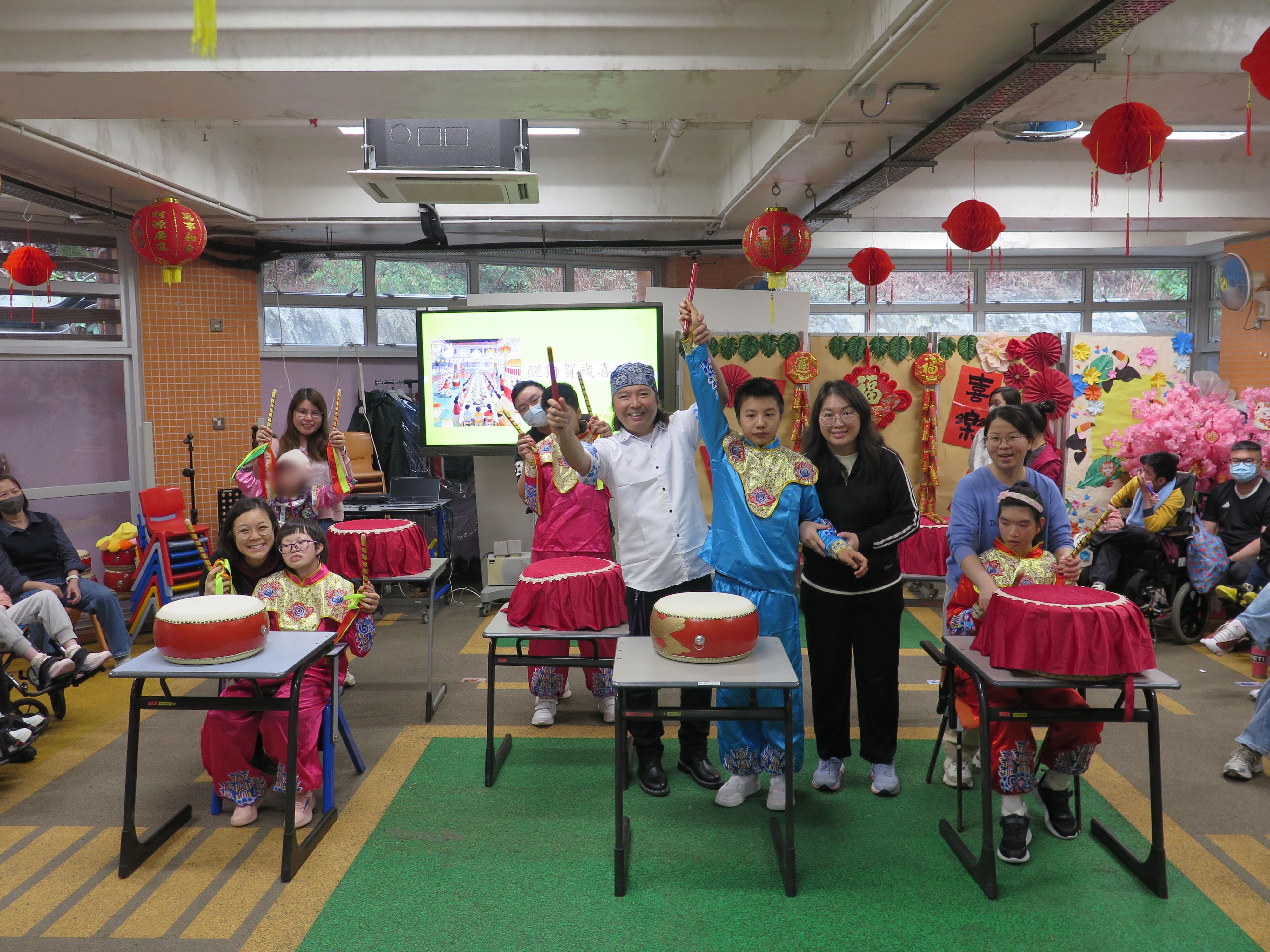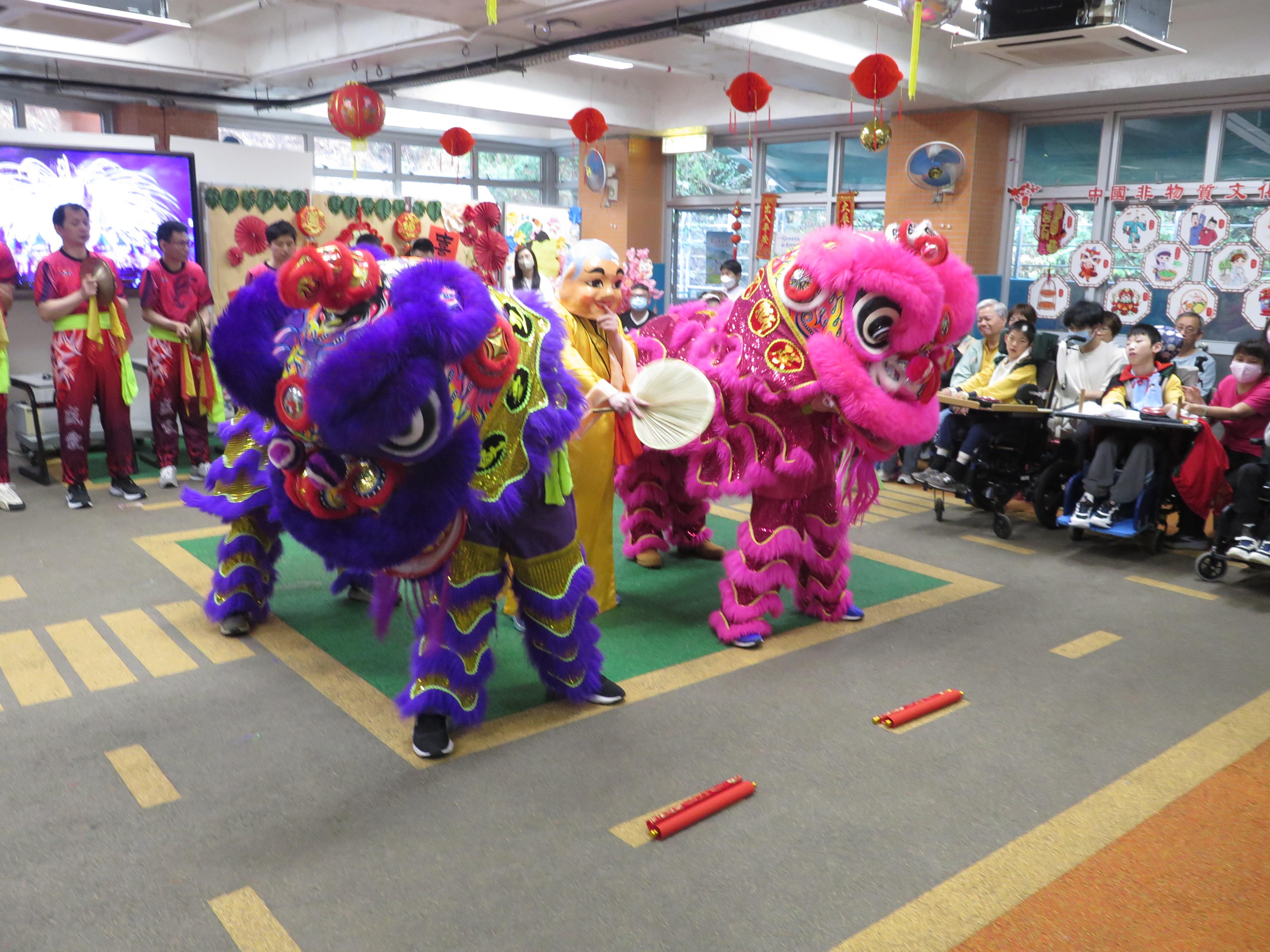 醒獅賀歲喜迎春 2026年3月3日(農曆十五)「醒獅賀歲喜迎春」家校盆菜聚餐,學生與家人在元宵佳節享受共聚時光,認識中華文化,提昇親子關係。當天除了傳統醒獅表演外,還有學生表演中國鼓樂,及音樂劇,發展學生潛能及促進社交能力。