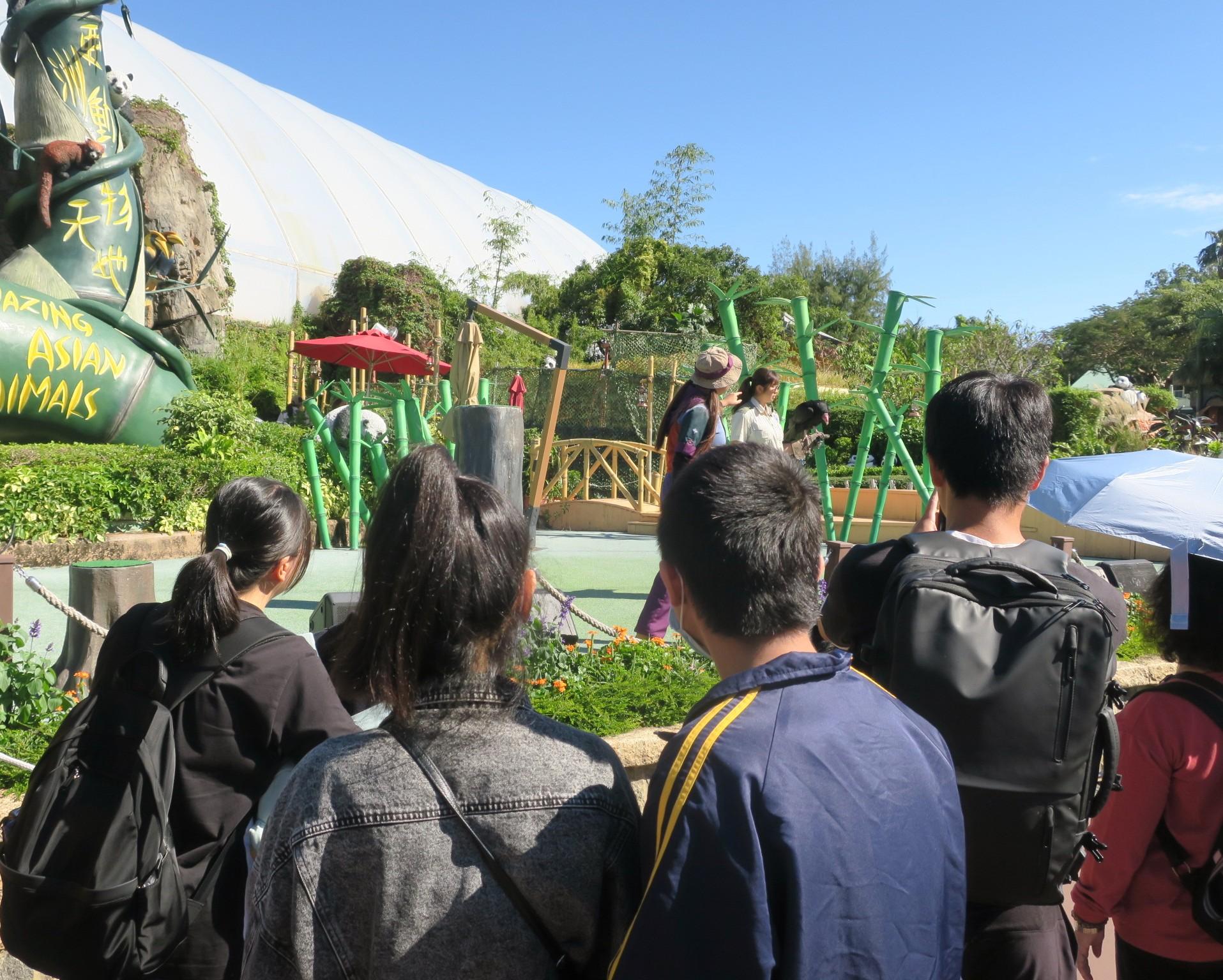 早上在園內拍照留念後,我們便率先到訪大熊貓館一睹國寶的風采。同學們在整個觀看過程中,都能遵守員內工作人員的指示,安靜而又專注地望著大熊貓一家的互動,甚是好奇、又面帶笑容,樂在其中。
