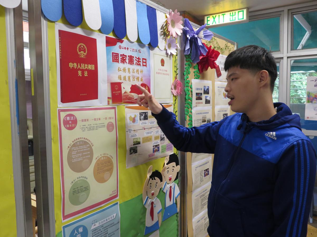 為迎接2025年12月4日「國家憲法日」,本校開展一系列教育活動,以增進全體教職員和學生對《憲法》、《基本法》及國家安全的認識。活動內容豐富多元,除舉行升旗禮及國旗下講話外,亦於有蓋操場設置「國家憲法日」專題展板,並配合教學短片播放及主題圖書閱讀等環節。