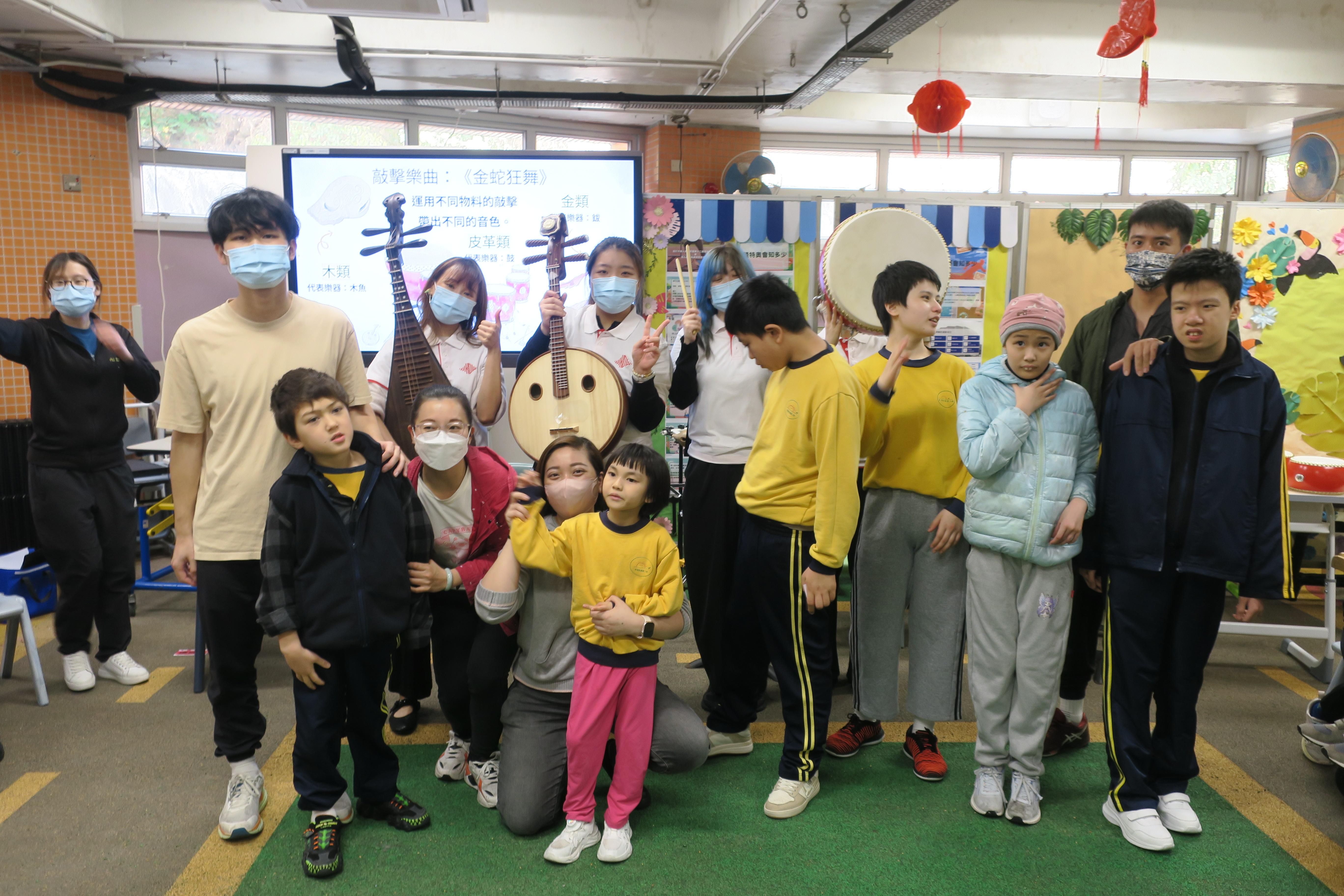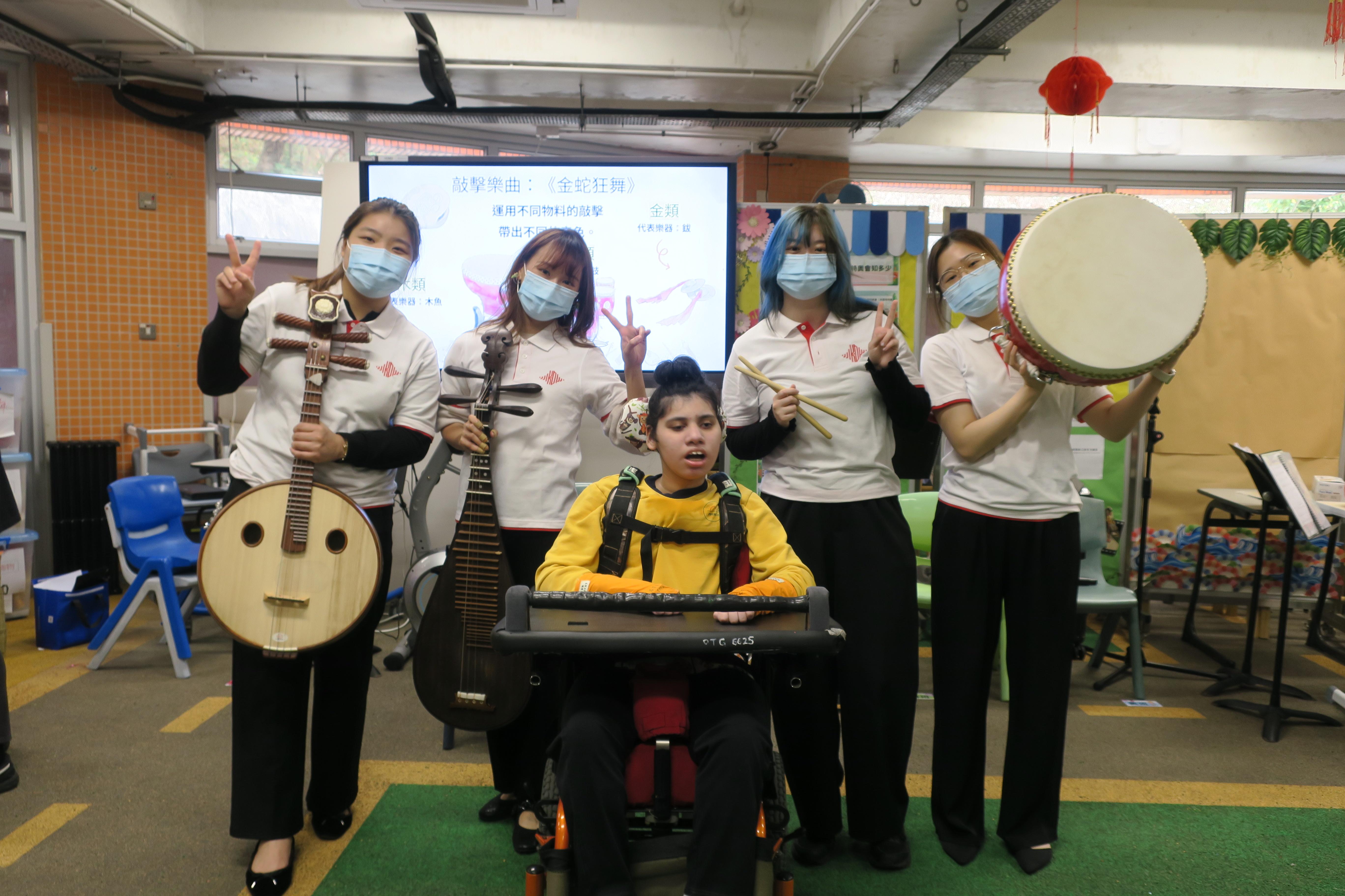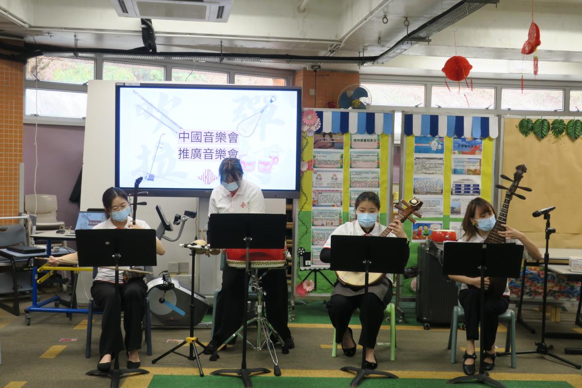 在2026年2月5日,本校邀請了一支中樂隊來校舉行中樂推廣音樂會。師生們透過欣賞樂師演奏的「吹、彈、拉、打」中國樂器,加深了對中國傳統樂器演奏技法的認識。隨後,學生們與台上的樂師一同演奏傳統樂曲,推廣中華文化,培養國民身份認同,大家都樂在其中!