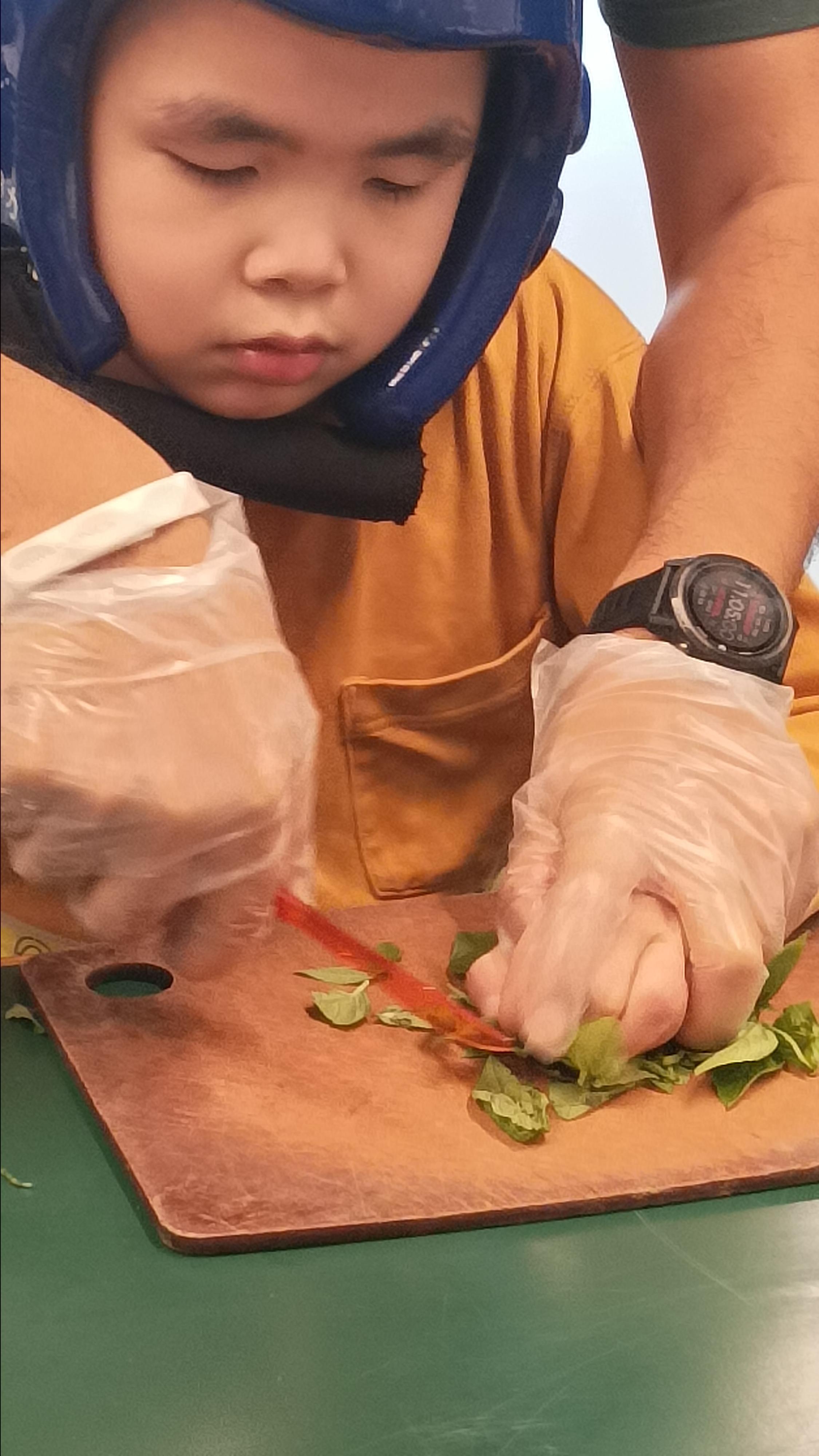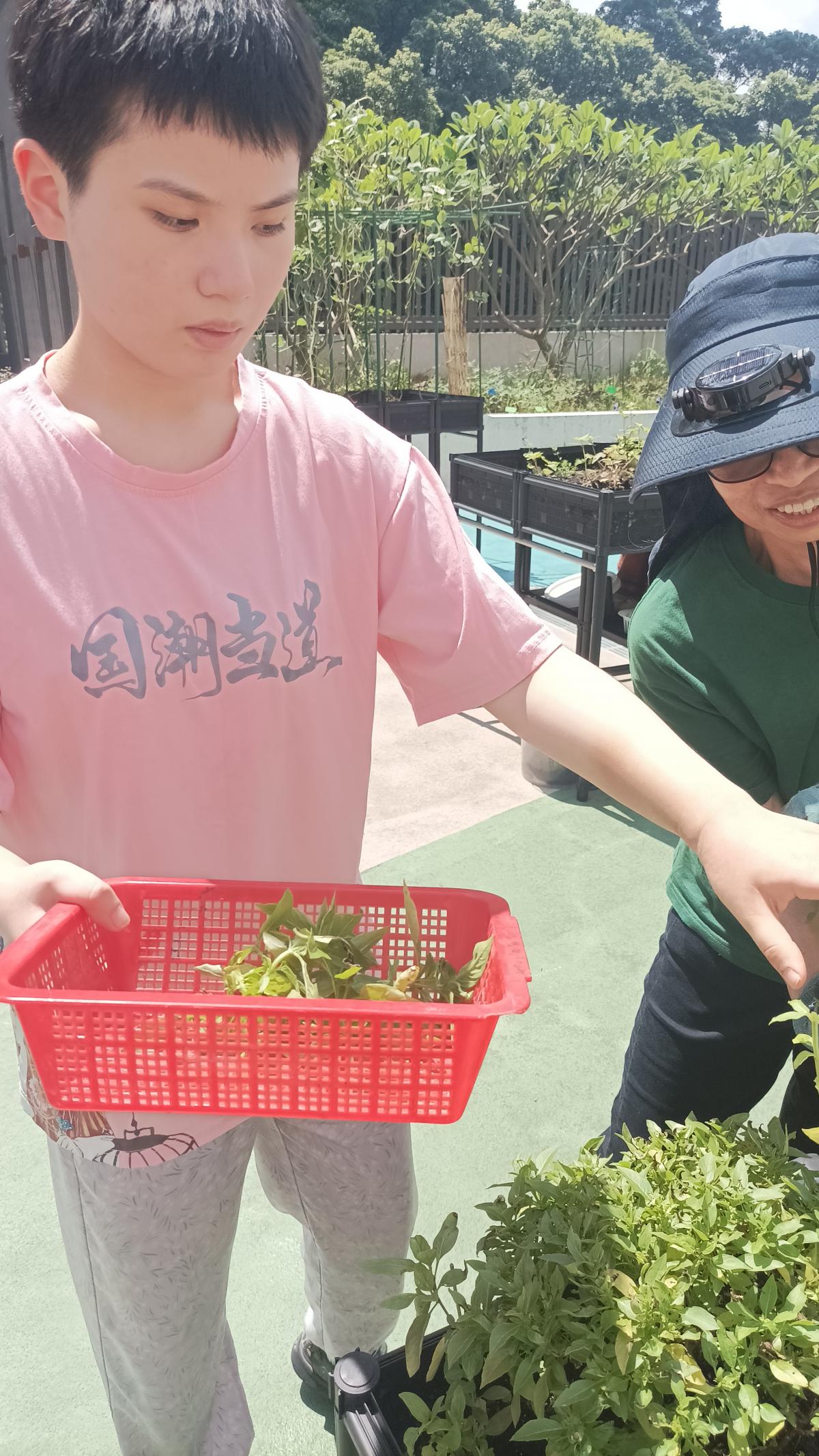 首先,我們與宿生一起前往社區購買食材,然後前往天台收割由宿生參與種植的香草。接著,我們一起烹調美食:你切香草,我切蕃茄,炒完雞蛋後再加入蕃茄。在大家的分工合作下,一道美味的「香草蕃茄炒蛋」在歡笑中完成,所有宿生都非常投入和嘗試。最後,大家一起品嚐這份努力的成果。