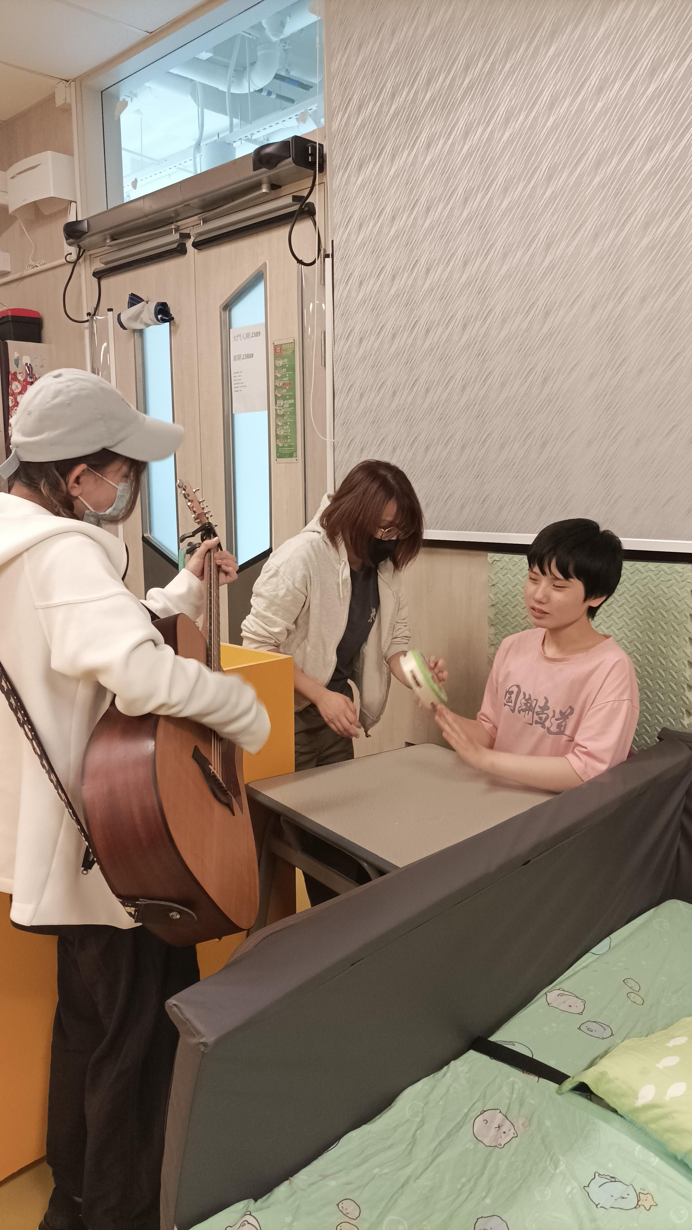 重陽節BUSKING 於29/10/2025假期,我們在家舍舉行音樂演奏活動。讓宿生嘗試使用搖鼓、沙槌等等不同的樂器,提升宿生的參與感以及成就感。宿生對於結他表現好奇,主動嘗試撥弄弦線,在音樂活動中與宿生一起載歌載舞,享受輕鬆的假日。