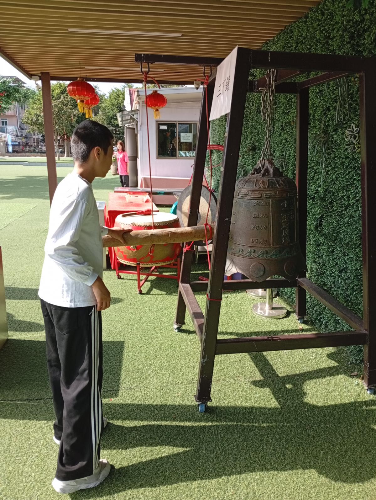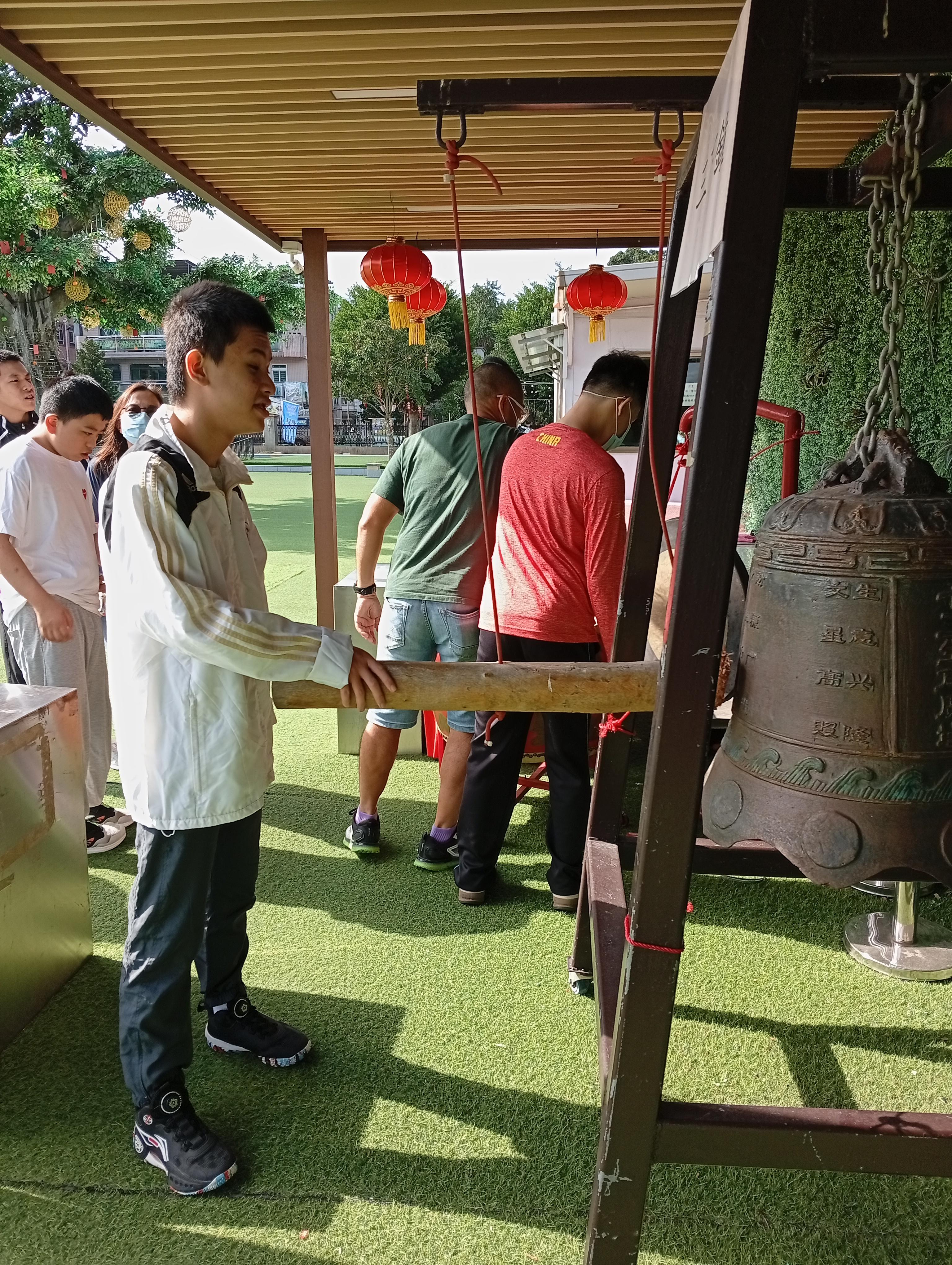 林村許願樹 8/11/2025宿舍與宿生前往林村遊覽,除了參觀許願樹外,樹旁有幾個大型樂器供遊人嘗試,有大鼓、大鑼及大鐘。宿生們對樂器均感興趣,主動嘗試敲鐘及打鼓,表現好奇及興奮,最後與宿生在不同景點拍照留念,渡過一個愉快的假日早上。