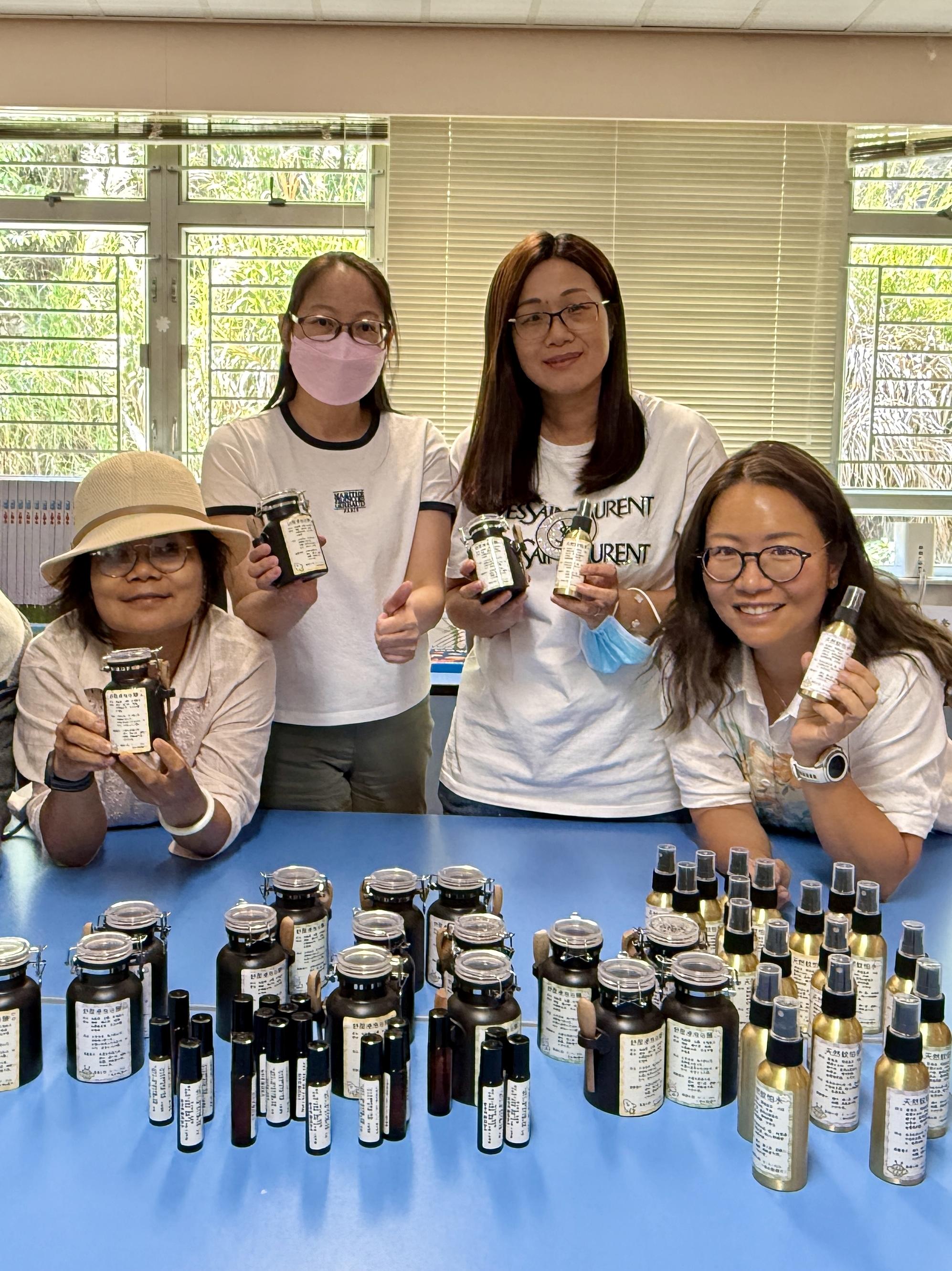 家長教職員會分別於28/4/25、12/5/25及2/6/25舉辦了「中醫芳香療法」家長及親子工作坊系列,是次活動讓家長們透過有系統地學習中醫漢方精油及穴位運用,促進個人身心健康,舒緩照顧壓力,與此同時家長亦有機會親身學習同孩子按摩,提昇家長對照顧特殊需要子女健康的知識及技巧,促進親子愉快關係。 另外家長們還製作精油產品自用及贈送全校教職員,促進家校合作。