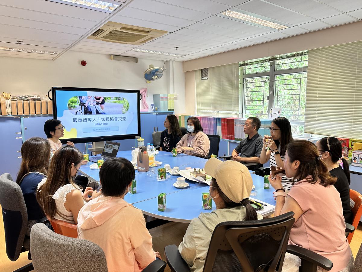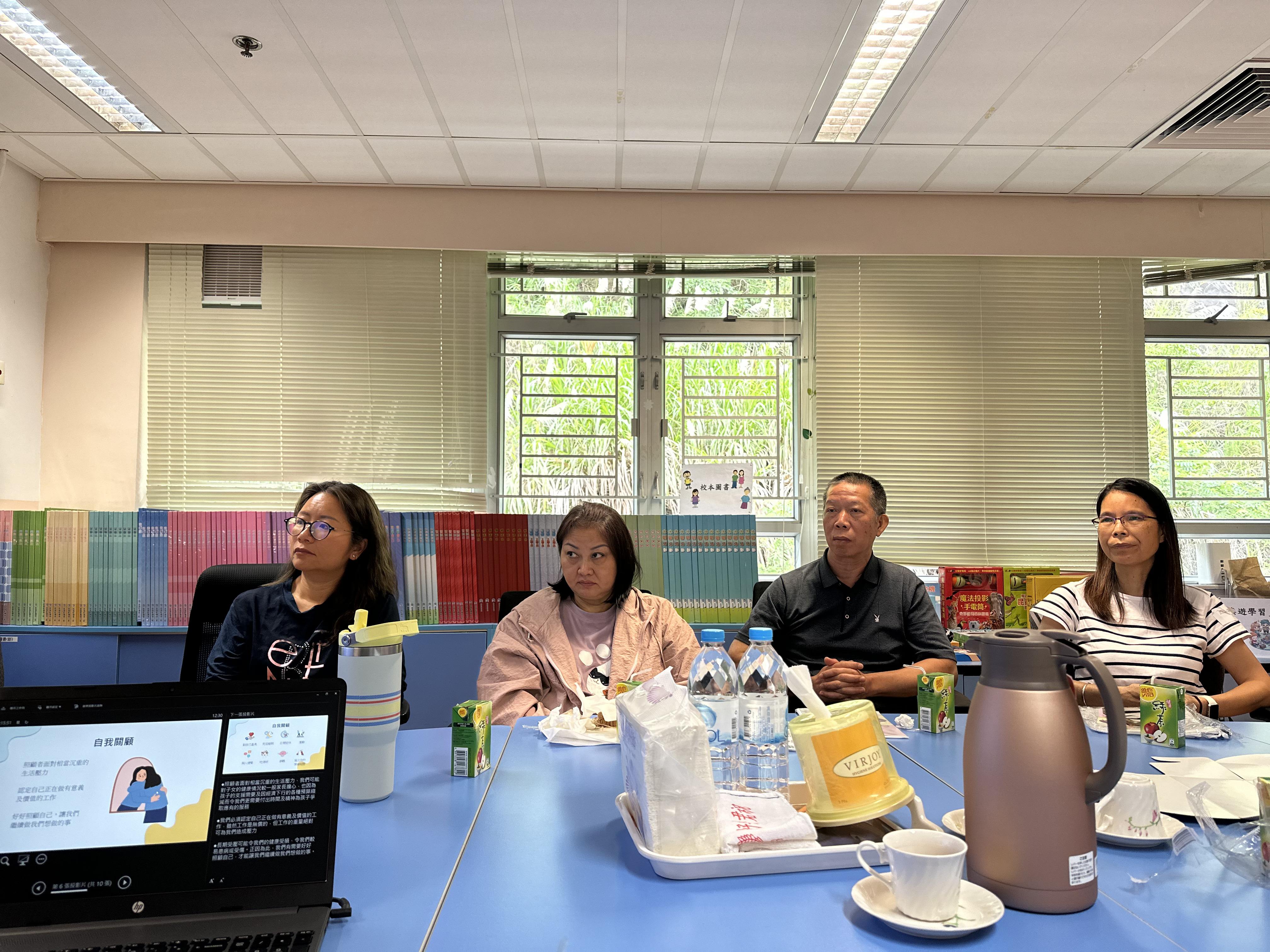 家職會委員接待「嚴重智障人士家長協會」到學校介紹協會工作及照顧者情緒支援。各位家長交流照顧者挑戰、社區支援等資訊,建立支援網絡。