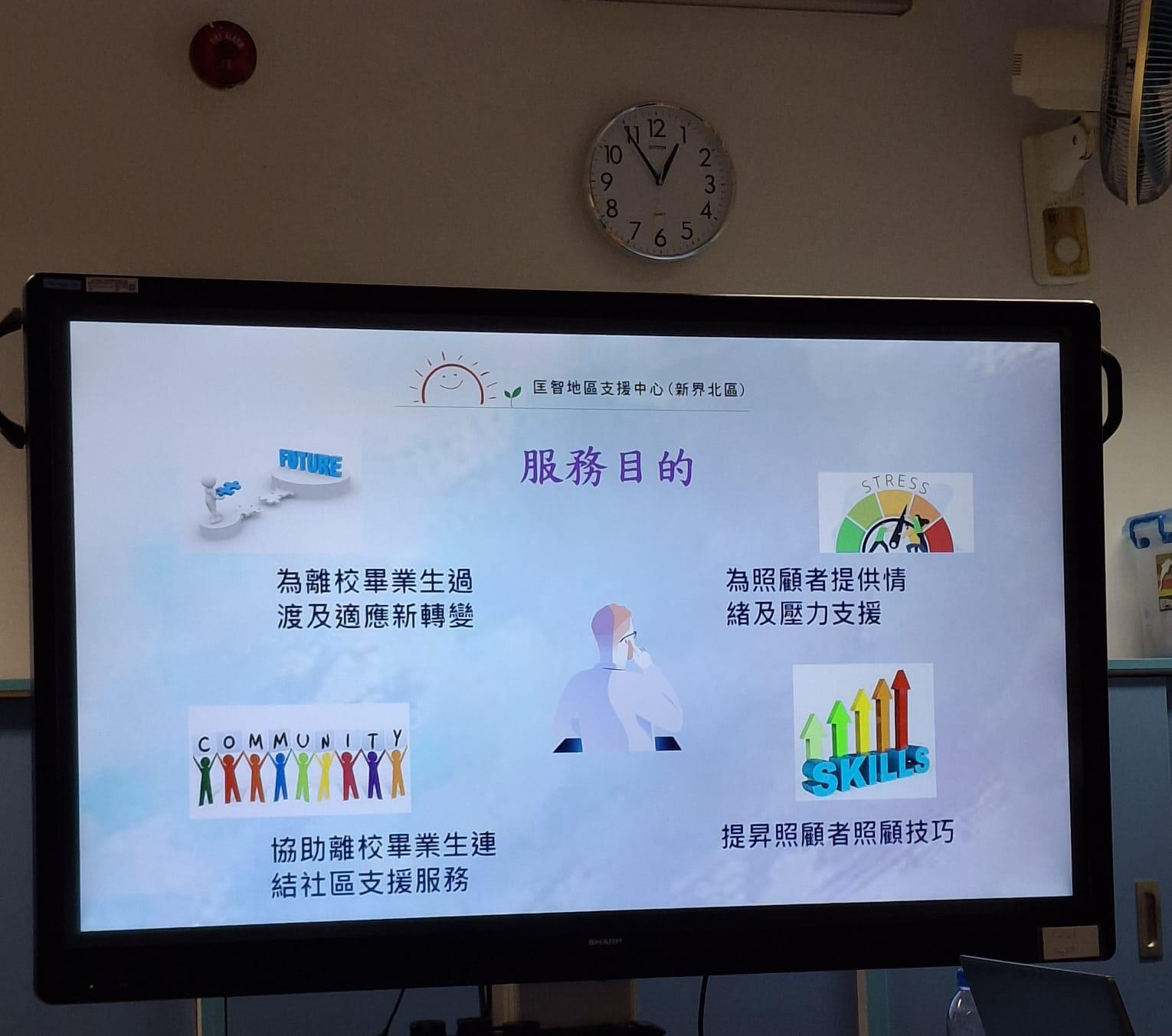 「準備孩子畢業講座」 11-11-2025舉辦「準備孩子畢業講座」,學校社工及離校生專隊社工 (匡智地區支援中心(新界北區)) ,為家長們簡介延長學習年期申請、學生出路安排、及分享社區支援服務等,聯繫家長網絡,促進家校合作。