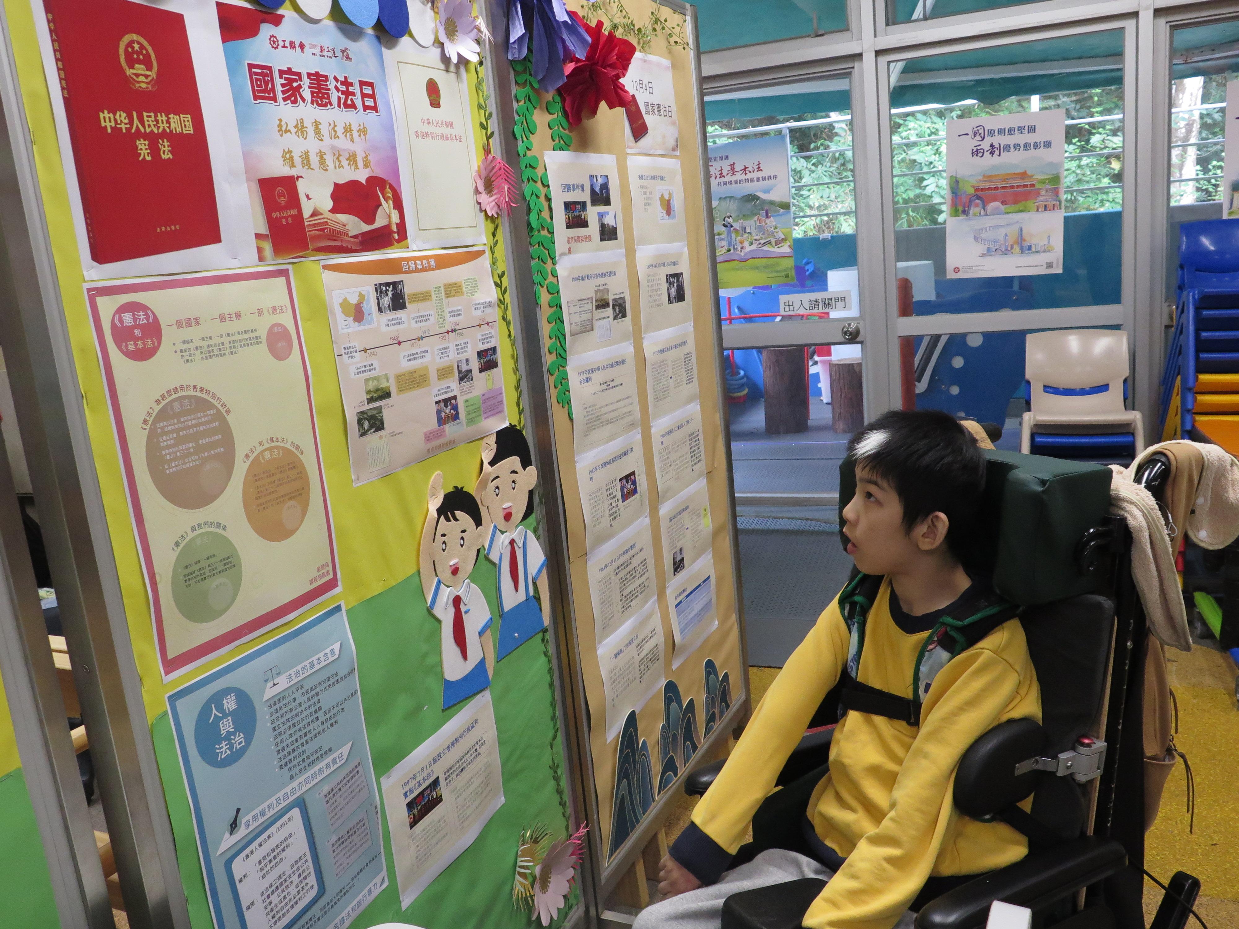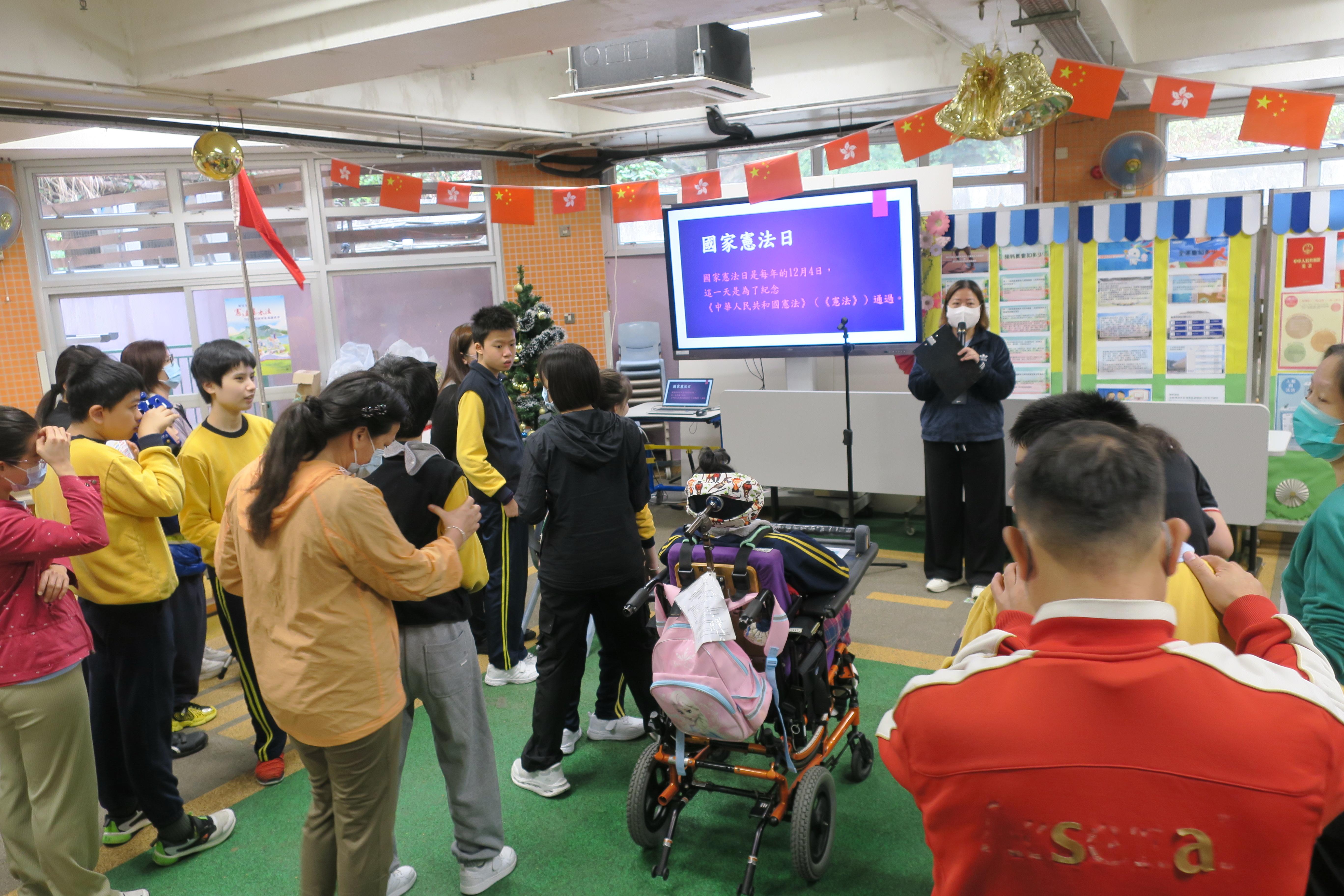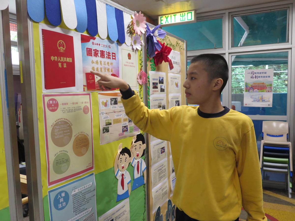 為迎接2025年12月4日「國家憲法日」,本校開展一系列教育活動,以增進全體教職員和學生對《憲法》、《基本法》及國家安全的認識。活動內容豐富多元,除舉行升旗禮及國旗下講話外,亦於有蓋操場設置「國家憲法日」專題展板,並配合教學短片播放及主題圖書閱讀等環節。