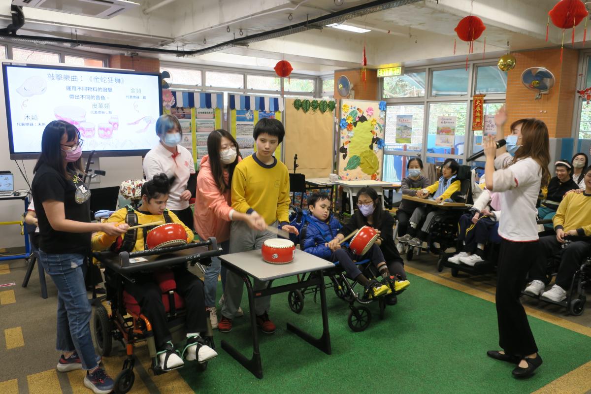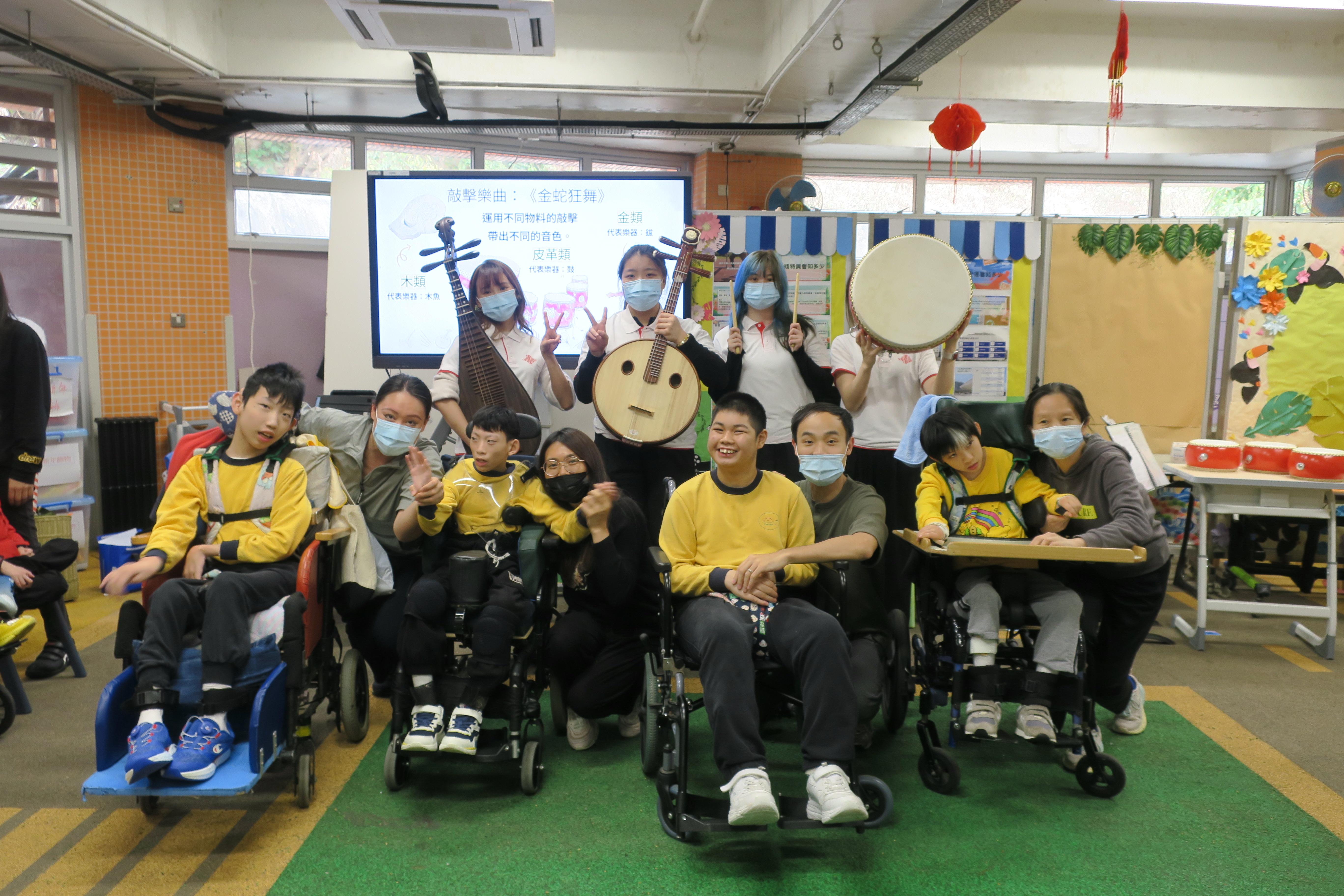 在2026年2月5日,本校邀請了一支中樂隊來校舉行中樂推廣音樂會。師生們透過欣賞樂師演奏的「吹、彈、拉、打」中國樂器,加深了對中國傳統樂器演奏技法的認識。隨後,學生們與台上的樂師一同演奏傳統樂曲,推廣中華文化,培養國民身份認同,大家都樂在其中!