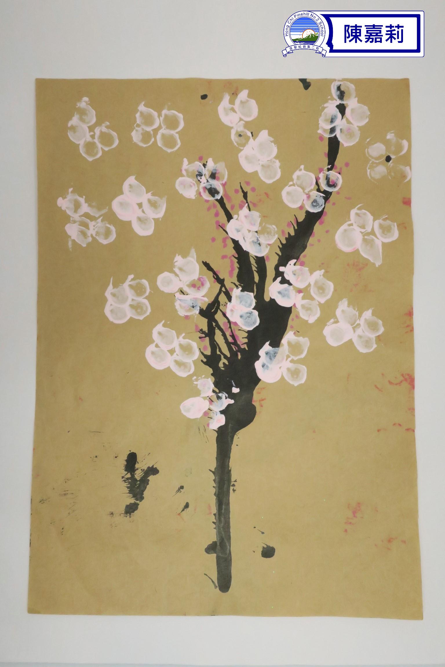 利用墨汁搭配吸管的方式讓學生「吹」出一棵棵充滿動感的桃花樹。